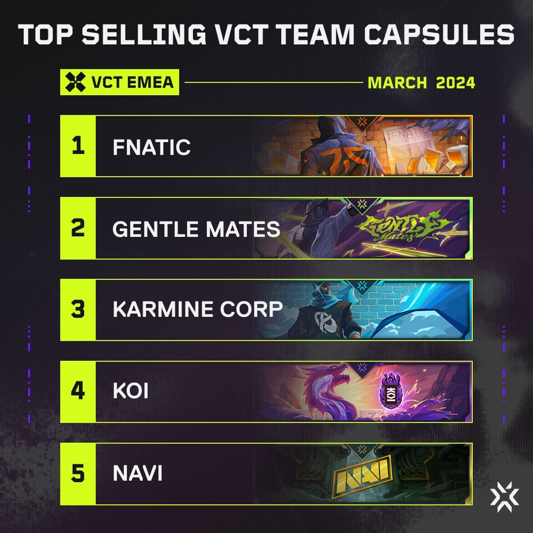 The VCT EMEA Team Capsules have been a great addition to the game, and we now how the data on what team sold the most.