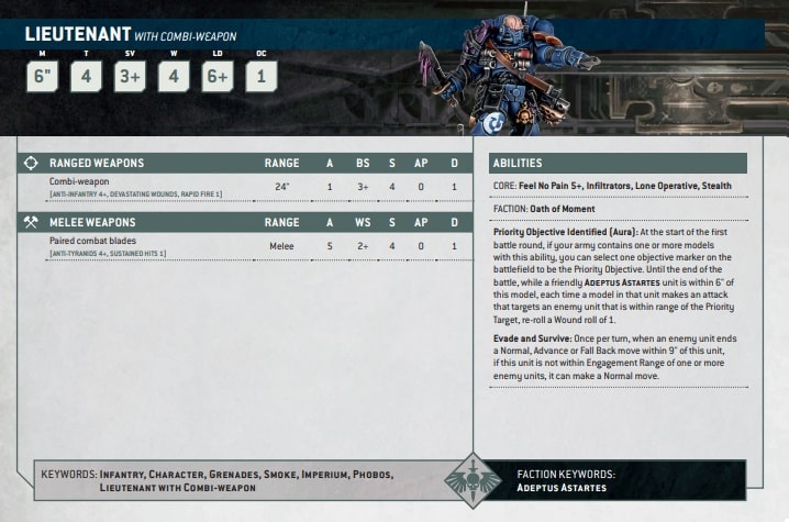 One of the flashiest models in the Leviathan Box (at least on the Adeptus Astartes’ side is the Librarian in Terminator Armour. This glowing paragon of psychic might can join the same squads as the Captain becoming their leader, which gives the unit a 4+ Feel No Pain against Psychic Attacks and the Sustained Hits 1 keyword. He can also ditch his storm bolter for a combi-weapon, which has less attack at range, but up close, it can be much more devastating than a humble bolter. His Smite has huge potential as well, capable of dealing 18 Wounds if you hit the god-roll.