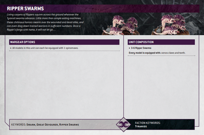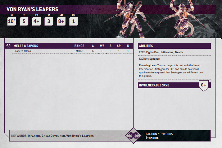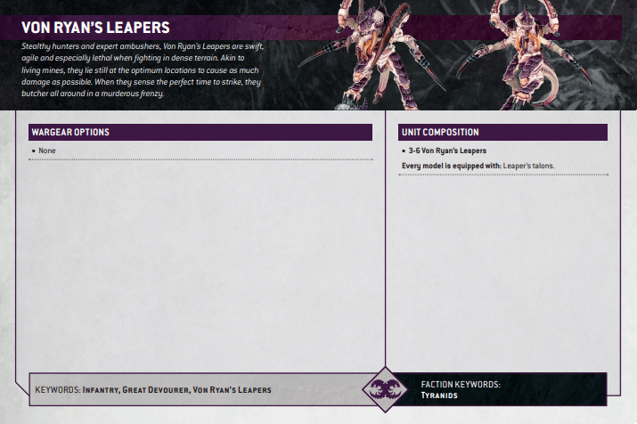Of course, there are many more units in the Leviathan box set, for example the Infernus Squad, the Winged Hive Tyrant or the Von Ryan’s Leapers – all of the datasheets can be found in the gallery below!