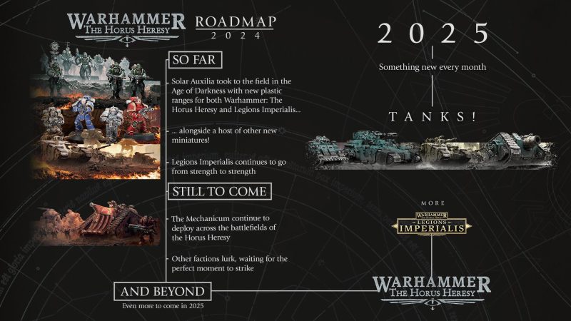 Again, like Old World, the “smaller” games seem to have gotten the worst deal here. Horus Heresy is likely going to get something new each month, and 2025 will have… Tanks. So, that's good.