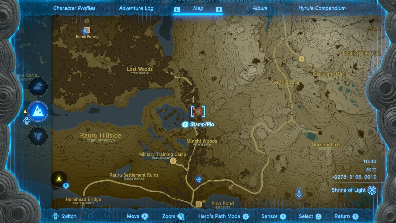 Like in Breath of the Wild, he’s located in the middle of the Lost Woods north of Hyrule Castle. But this time around you can’t just trial and error your way through the Lost Woods.